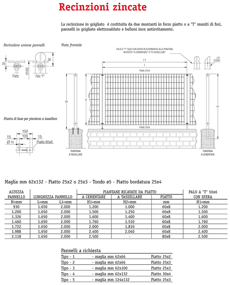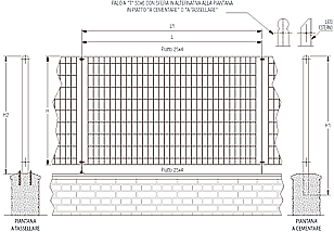 La recinzione in grigliato è costituita da due montanti in ferro piatto o a "T" muniti di fori, pannelli in grigliato elettrosaldato e bulloni inox antisvitamento.